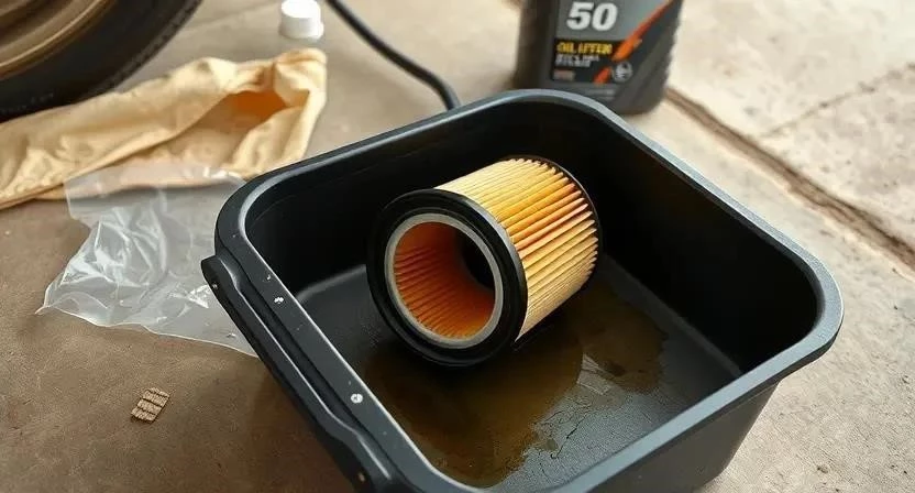 - Подготовьте необходимые инструменты и материалы: новое масло, масляный фильтр, ключ для масляного фильтра, гаечный ключ для сливной пробки, воронку, емкость для слива отработанного масла, перчатки.