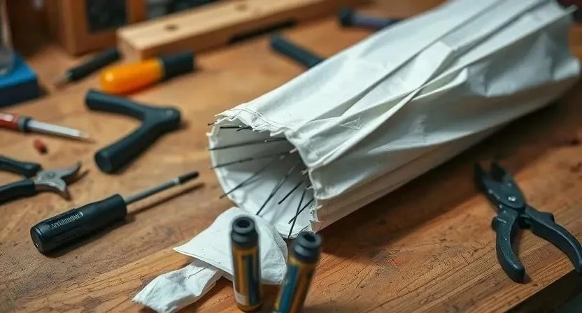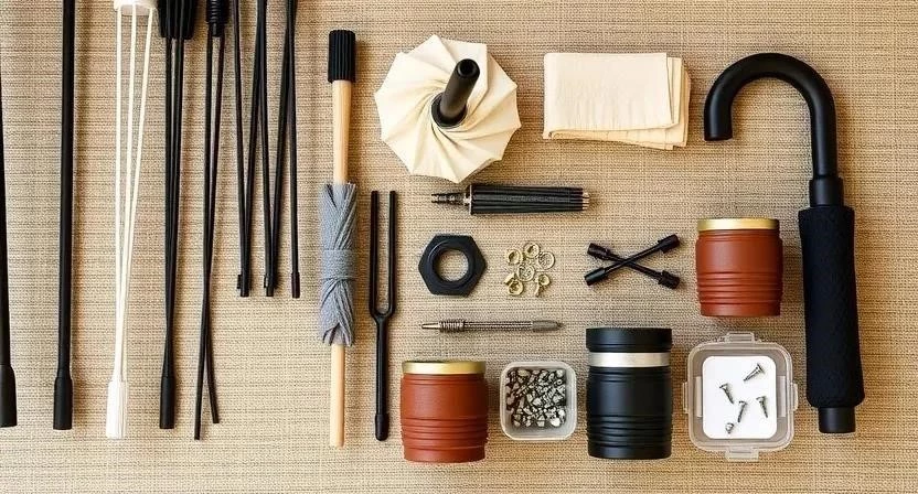 Для ремонта зонта вам понадобятся следующие инструменты и материалы: плоскогубцы, отвертки (разных размеров), шило, иголка с ниткой, клей (суперклей или специальный клей для ткани), запасные спицы (если необходимо), новая ткань (если требуется замена купола), смазка (например, WD-40) для механизма. Инструменты можно найти в любом хозяйственном магазине или строительном супермаркете. Запасные части, такие как спицы, можно приобрести в специализированных магазинах для ремонта зонтов или заказать онлайн. Не забудьте о защитных очках, чтобы избежать попадания мелких деталей в глаза.