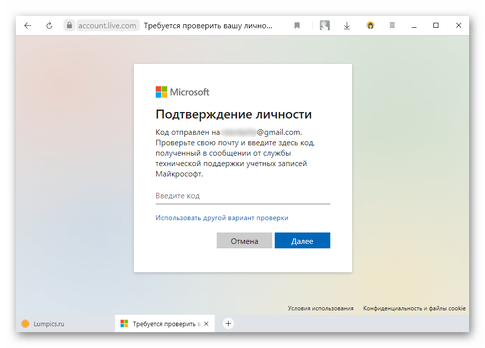 Подтвердив то, куда вы хотите получить код, дождитесь, пока Microsoft его отправит. Если он у вас уже есть (бывает, когда код пришел не сразу и пользователь уже закрыл вкладку с восстановлением), кликните по соответствующей ссылке.