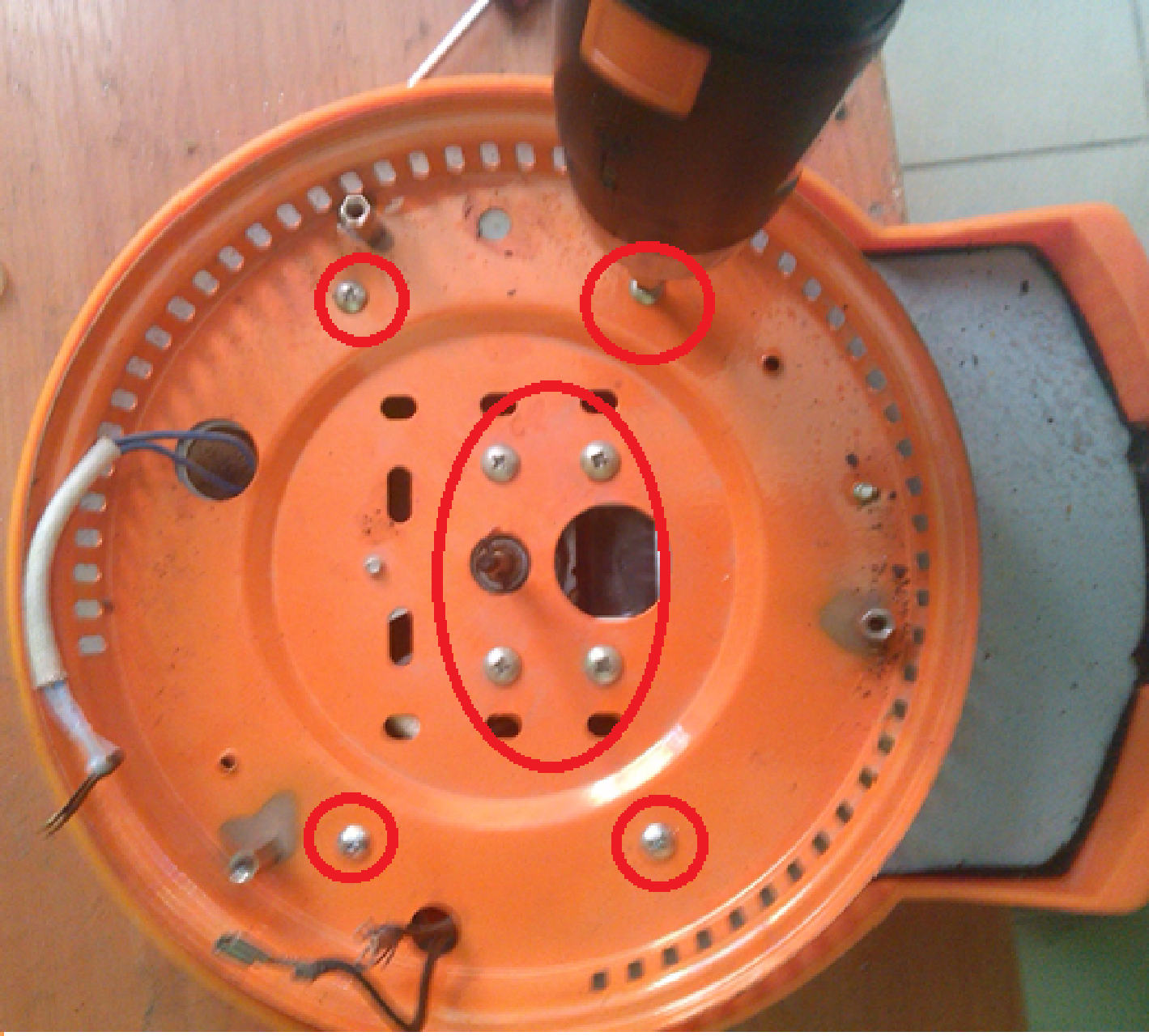 Начинать разборку агрегата нужно с откручивания винтов, крепящих сетку снизу корпуса.
