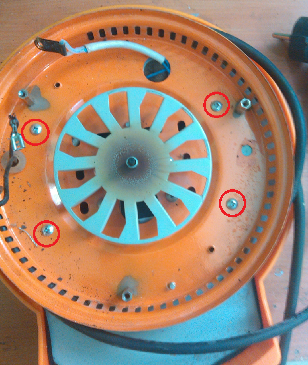 Для проверки вентилятора нужно продолжить разбирать прибор. Откручиваем винты крепления нижней части вентилятора и электродвигателя.
