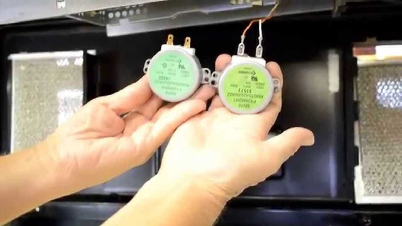 Ролик приводится в движение моторчиком, который получает питание при закрытии дверки. Иногда микроволновка работает, но греет пищу неравномерно потому что перестал вращаться столик. Это можно увидеть через закрытую дверку. Причина — выход из строя моторчика, поломка кольца с роликами. В этом случае ремонт микроволновки своими руками — заменить моторчик или направляющее кольцо.