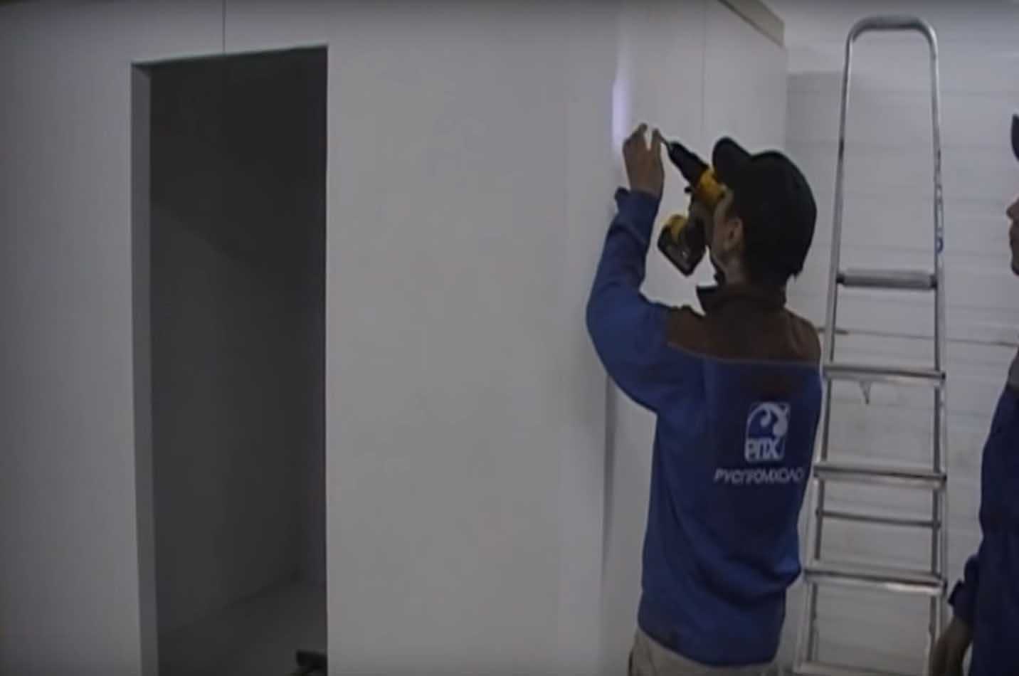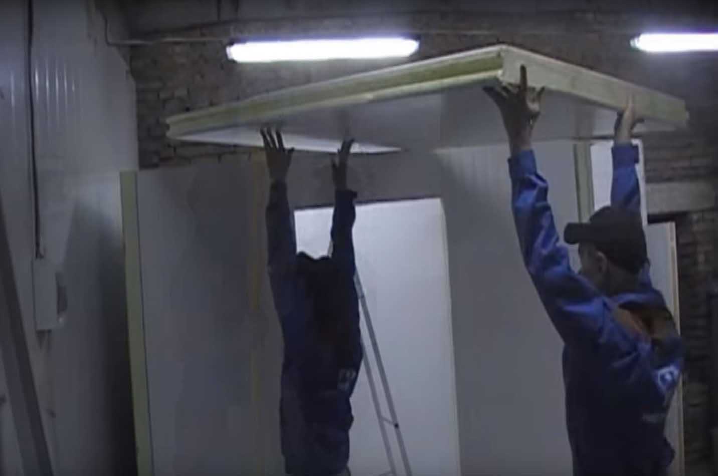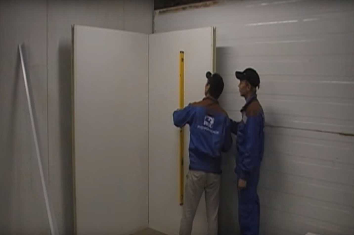 В конце устанавливается специальная холодильная дверь (приобретается отдельно от сэндвич-панелей). Также может быть смонтировано освещение холодильной камеры.