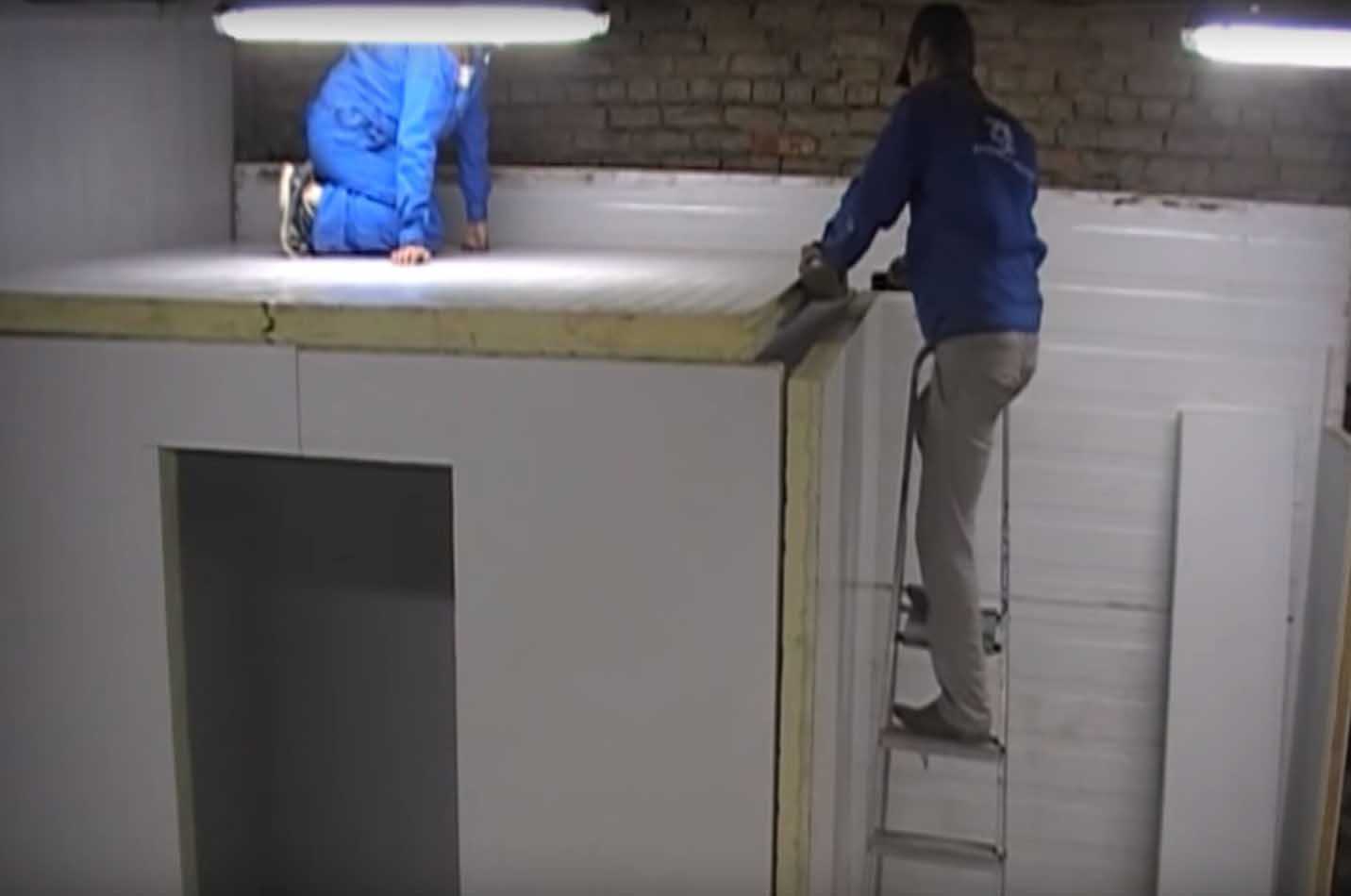 На следующем видео показан процесс создания морозильного аппарата из комнаты.