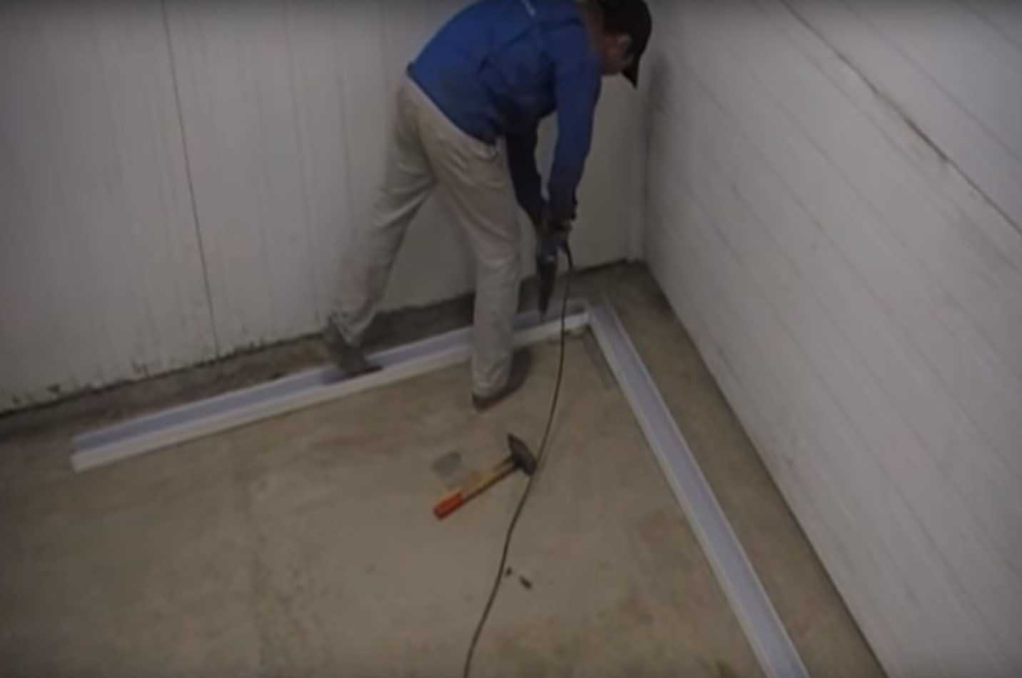 Сначала к полу помещения присверливается направляющий профиль (как для стен из гипсокартона) по всему периметру будущей камеры.