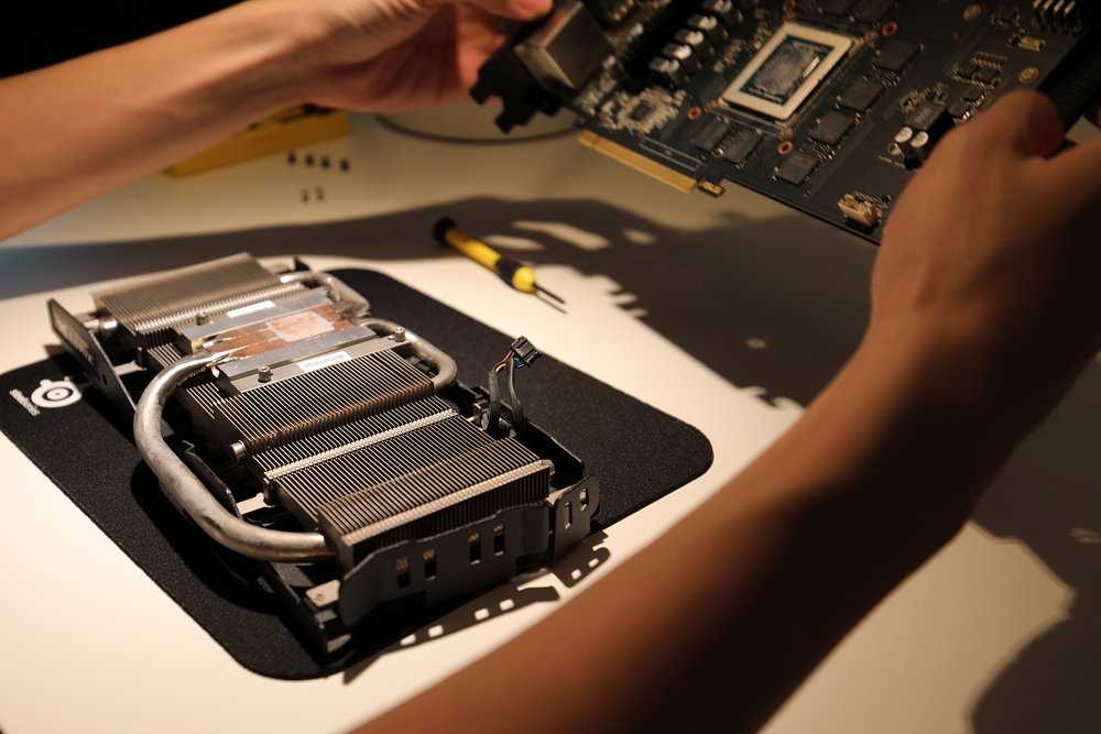 Открутите крепление радиатора и кулера. Винты находятся на задней панели графического адаптера.