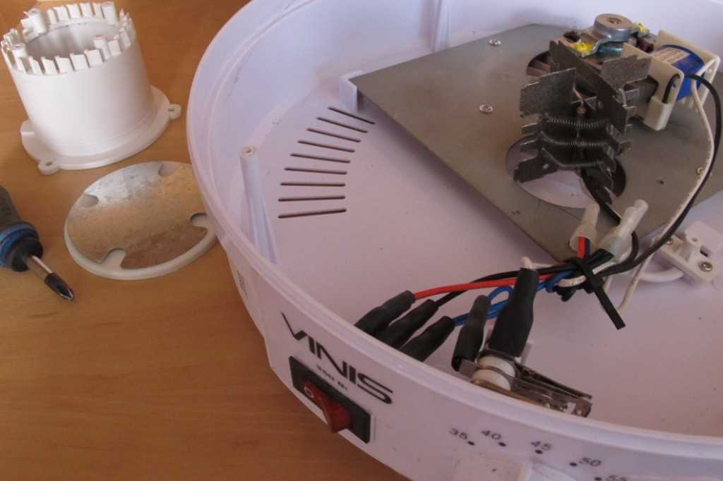 Провода припаиваются вместо встроенного термостата обогревателя, а наружу выводится цифровой термометр.