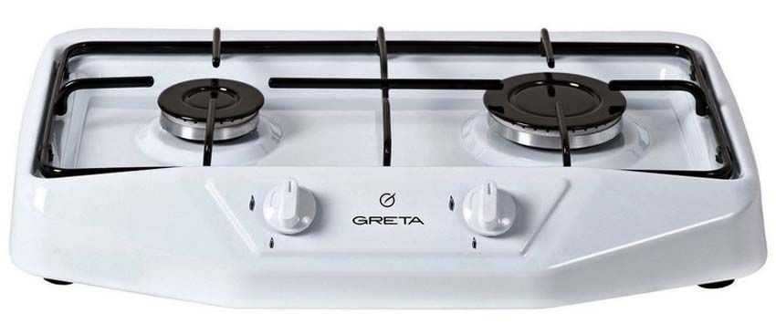 Такую газовую плиту для дачи под баллон двухкомфорочную встраивают в корпусную мебель. Хорошая идея для экономии свободного пространства на кухне