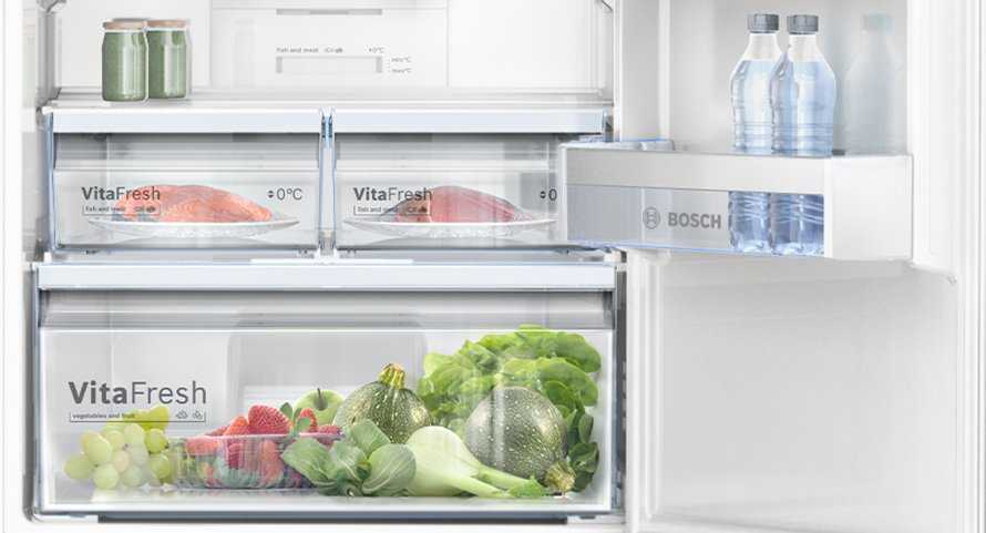 Камеры вмещают полки и ящики для хранения. «Бош» разработали контейнеры для длительного хранения отдельных продуктов: