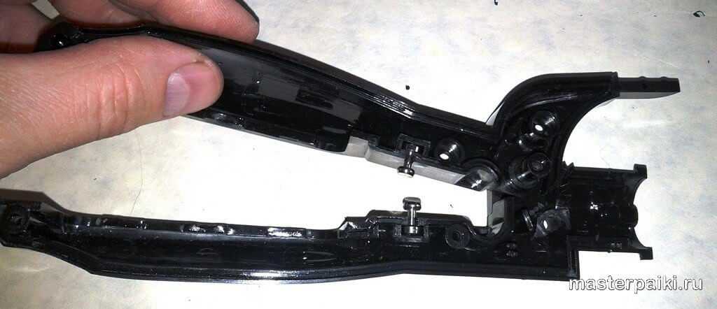 Следующим шагом снимаем верхнюю часть корпуса ручки. Там находится плата управления нагревом, к ней припаяны выводы от нагревательной пластины.