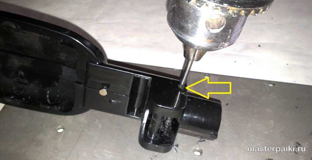 На фото показано место сверления отверстия в корпусе для завивки волос.