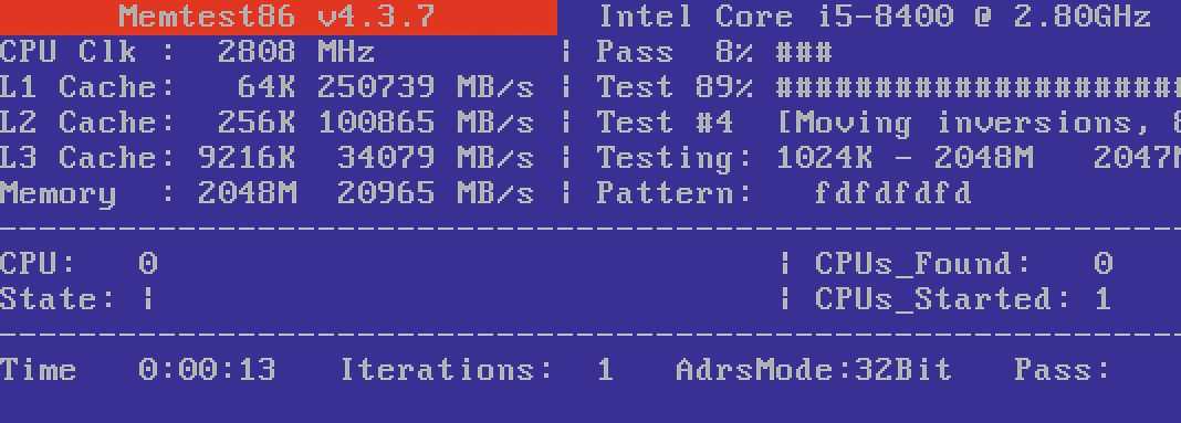 Инструмент Memtest86 загружается с USB-флешки. Для выявления неисправности проверьте каждый модуль RAM по отдельности