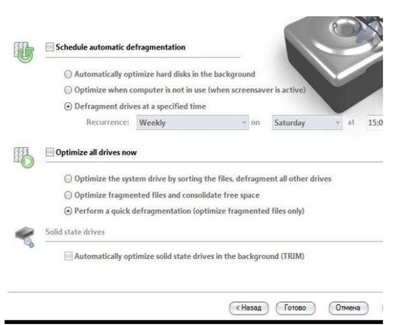 Продвинутому пользователю рекомендуется составить график дефрагментаций или самостоятельно принимать решение о целесообразности данной процедуры — например, приступать к чистке только после крупного обновления файлов.