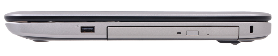 На правой стороне имеется отверстие под замок кенсингтона, оптический DVD-привод и один порт USB 2.0.