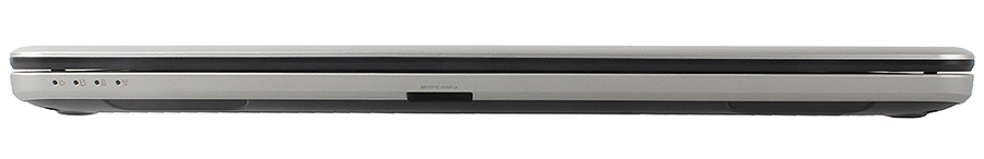 На лицевой стороне ноутбука расположены четыре светодиодных индикатора работы, а также гнездо карт-ридера. Сюда же вынесены два динамика.