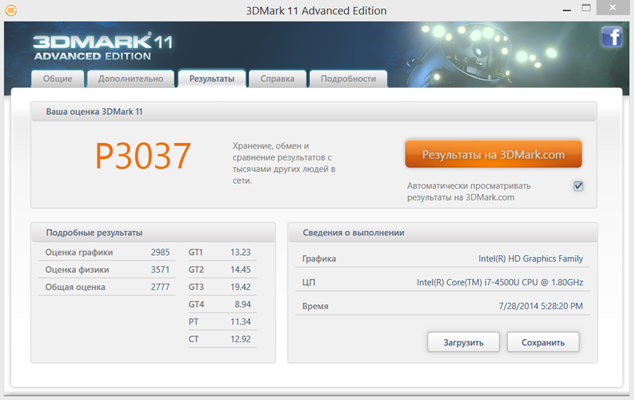 Рисунок 11. Баллы 3D Mark 11