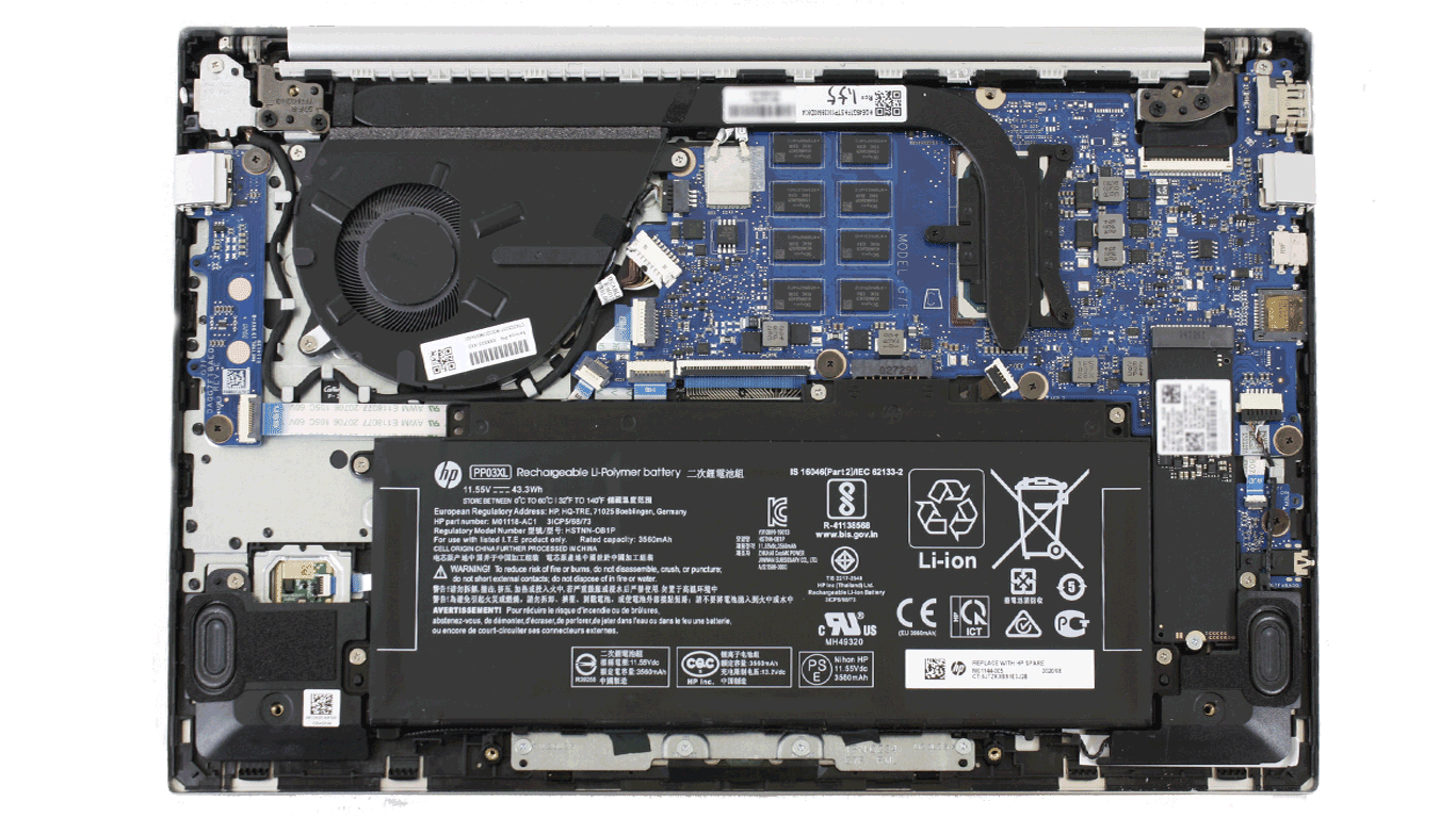 На нижней рамке расположен логотип HP, а чуть ниже, над клавиатурой – направленные вверх динамики закрытый решёткой в виде пчелиных сот. Звук можно настроить через эквалайзер от B&O, но он всё равно остаётся тонким и практически без басов. Кроме того, на максимальной громкости часто появляются искажения.
