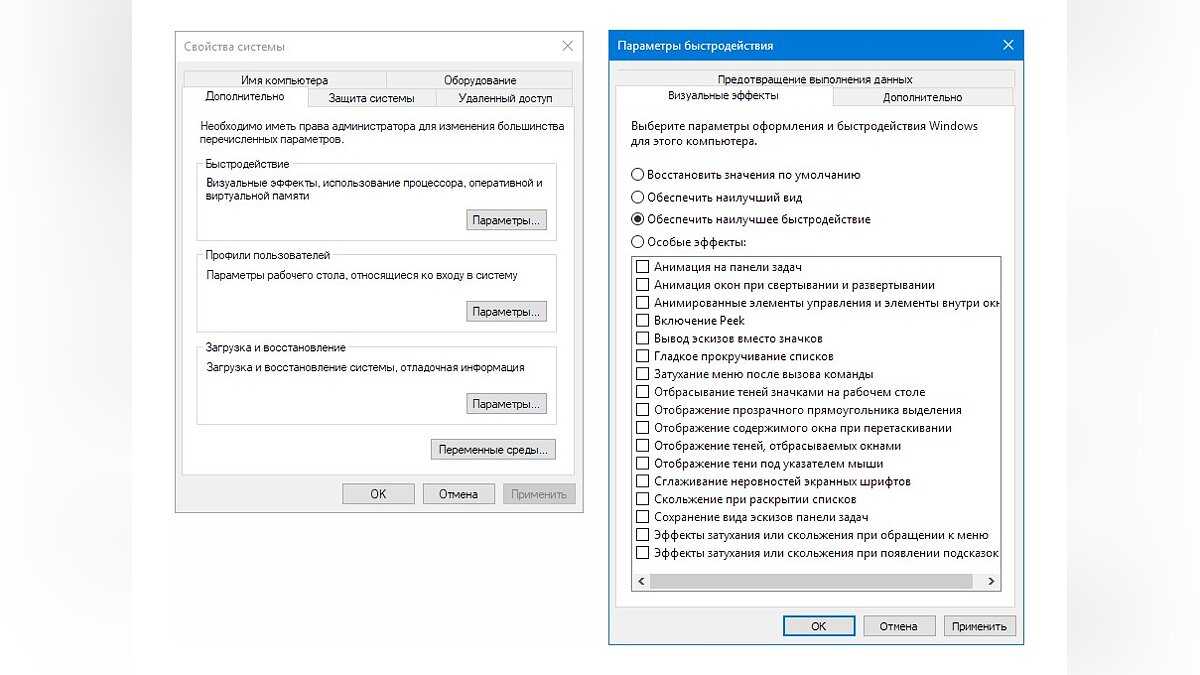 - Поставить флажок напротив опции «Обеспечить наилучшее быстродействие».