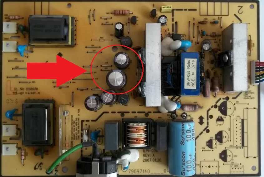 Вздувшиеся конденсаторы на внутреннем блоке питания монитора