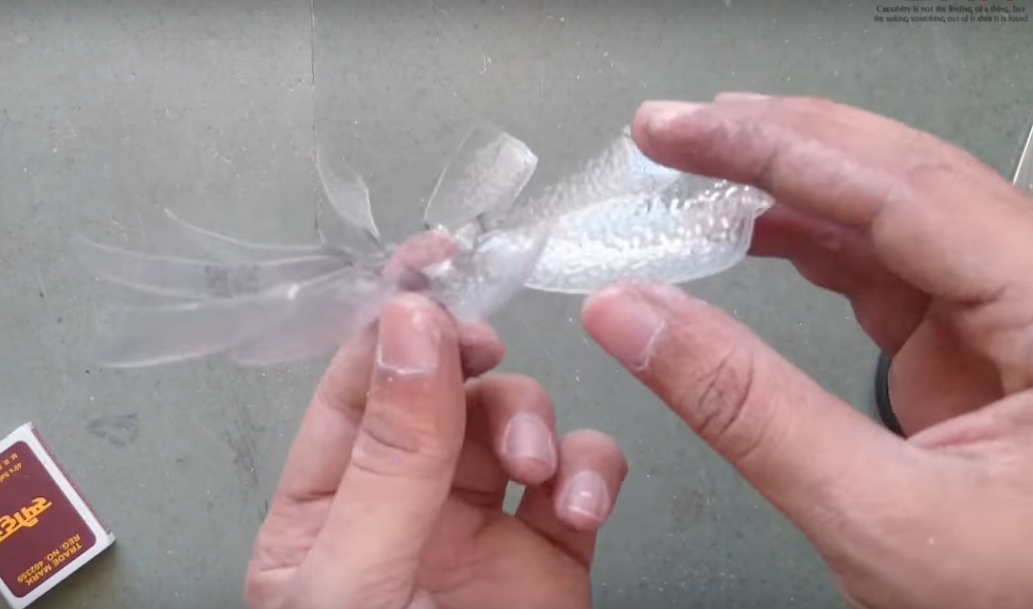 Теперь нужно создать вентиляционный механизм. Он будет сделан из обычного пластика. Возьмите любую бутылку, отрежьте её верхнюю часть и создайте следующую деталь: