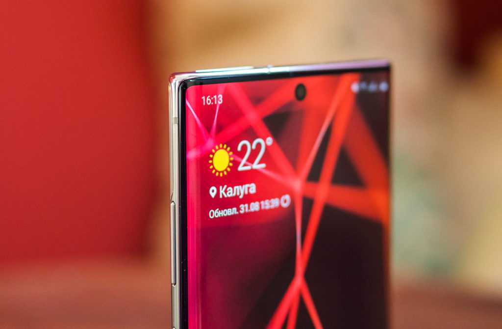 Одиночная передняя камера теперь выровнена по центру верхней части дисплея Infinity-O и смотрится менее навязчиво, чем у S10. Вместо того чтобы использовать такой же большой вырез, как у S10, конструкторы Galaxy Note 10 переместили его в середину и заметно уменьшили. Пока Samsung не начнёт использовать решения как у OnePlus 7 Pro или не найдёт иной способ полностью спрятать линзу внутрь дисплея, это будет лучшим решением.
