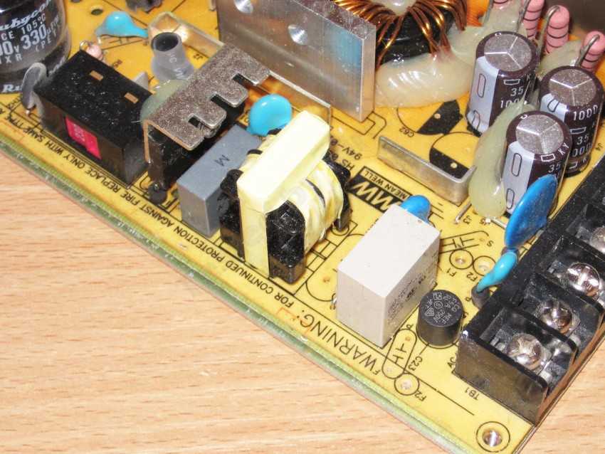 По сути, импульсный блок питания имеет практически типовую конструкцию во многих электрических устройствах. Сначала проверяем его на самые банальные вероятные поломки– обрыв сетевого кабеля и выгорание предохранителей. Значительно ускорить диагностику можно, если измерить напряжение на самом большом конденсаторе в импульсном блоке питания. Как правило, он ставится после диодной сборки и после сетевого фильтра. Если на нем есть примерно 300В постоянного напряжения, то вы автоматически узнаете, что и предохранитель, и фильтр питания, и сетевой кабель, и входные дроссели полностью исправны. Существуют блоки, где вместо одного огромного конденсатора на 400В стоят два. В таких блоках напряжение на каждом конденсаторе примерно 150В. Если напряжения нет, то лучше всего проверить все по отдельности: прозвонить сетевой кабель, проверить каждый диод выпрямителя, предохранитель, конденсаторы, дроссели и т.д. Причем предохранители бывают очень коварны: внешне выглядят вполне исправными, а на прозвонке имеют бесконечно высокое сопротивление. Это обусловлено тем, что в плавких предохранителях обрыв или перегорание может произойти в месте, которое и не видно совершенно.