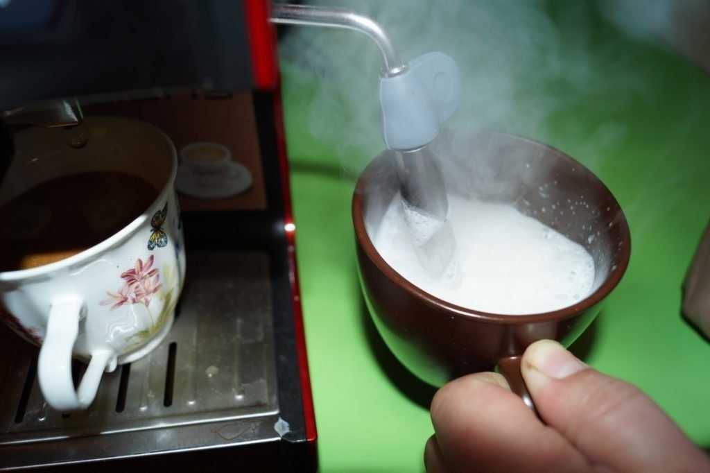 При наличии функционального элемента в аппарате, служащего для взбивания и прогрева молока, агрегат сразу можно отличить от стандартной кофеварки. Он имеет второстепенную металлическую трубку, из которой под силой давления выходит пар. После того, как молоко будет налито в отдельную емкость, пользователь подставляет ее под трубку, ловит молочную пенку. Эта функция способна превратить обычный кофе в изысканный молочный коктейль.