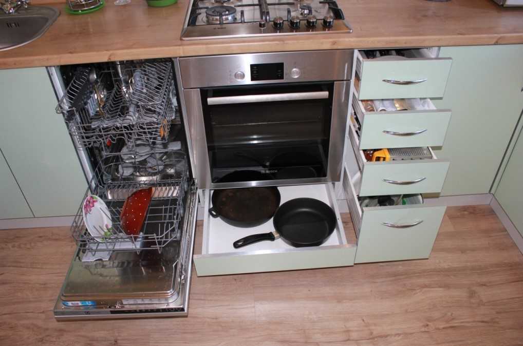 Если хотя бы одно из условий не выполнить, к примеру, нет подходящего модуля или не подобраться к коммуникациям, то придется отложить покупку встраиваемой посудомойки или задуматься о переустройстве кухни.