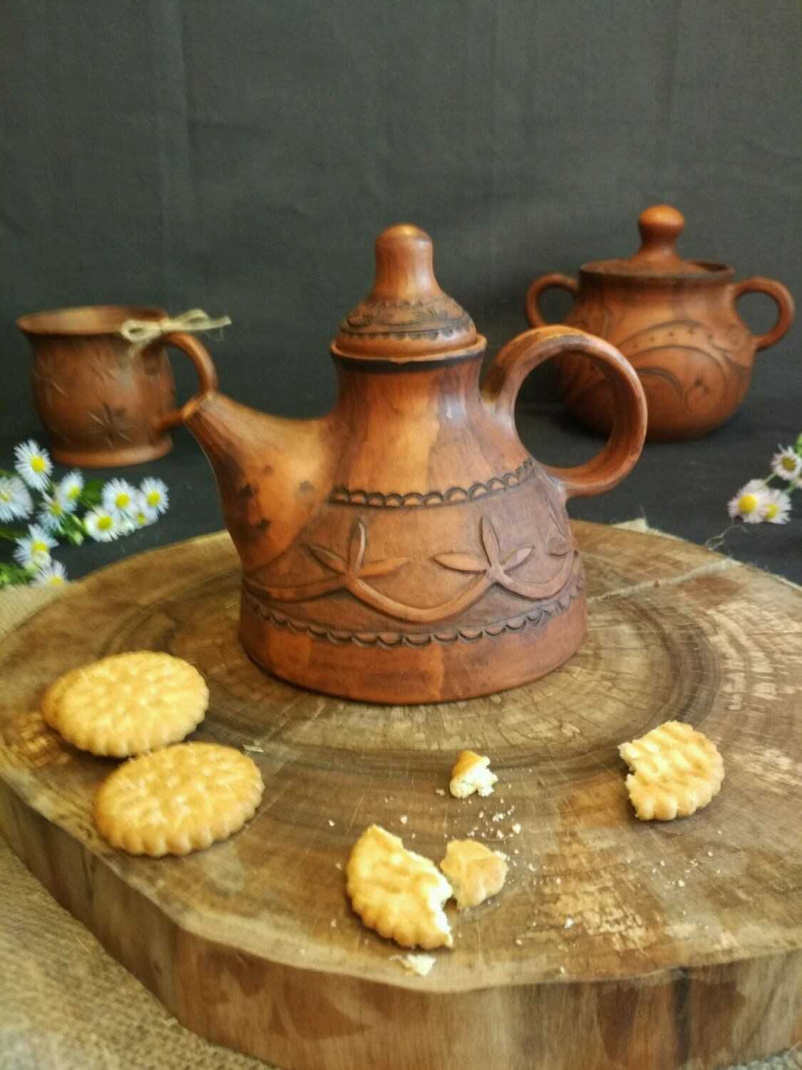 - Глиняные чайнички – популярны среди любителей чая, разбирающихся в особенностях и видах. Глина издавна использовалась в изготовлении кухонной утвари, она обладает свойством поддерживать оптимальную температуру в течение длительного времени и насыщать напиток кислородом, усиливая вкусовые характеристики.