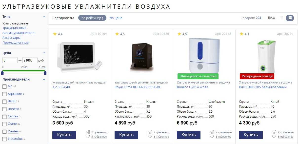 Обращайте внимание на модели, оснащенные системой фильтрации воды, во избежание появления белого налета в помещении.