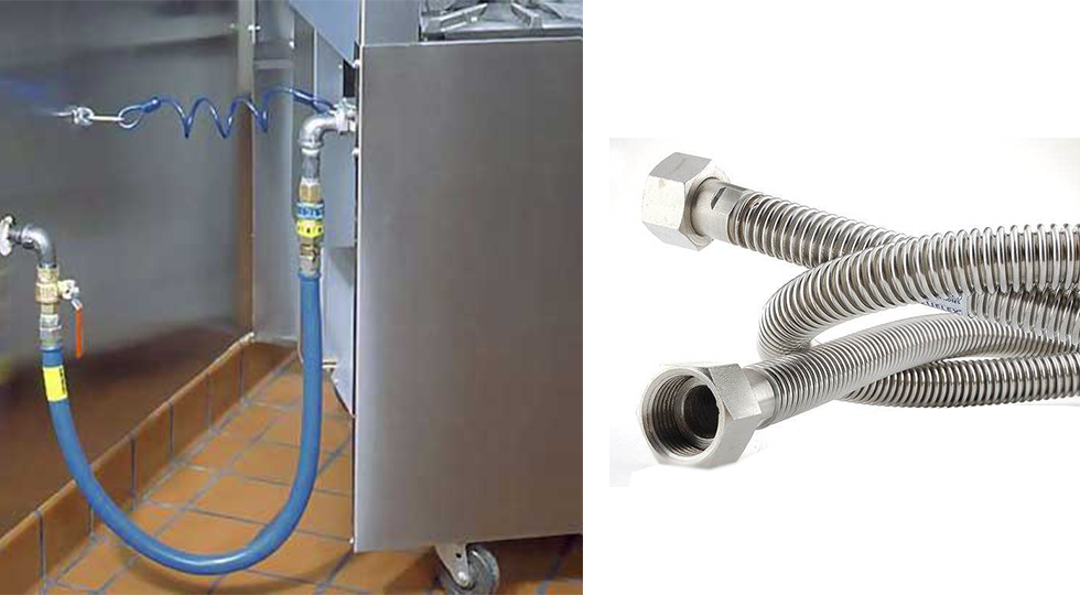 Подключение к системе центрального газоснабжения может быть осуществлено двумя способами: с помощью жесткой стальной или медной трубы, или посредством гибкого сильфонного шланга (резиновый шланг в металлической оплетке из нержавейки).