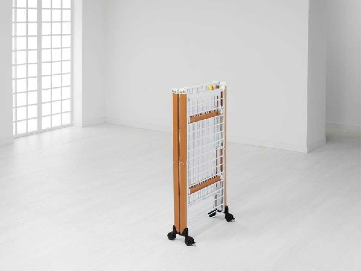 Сушилка быстро складывается и раскладывается. Ее можно установить в любом месте и просто включить в розетку. Небольшой вес и компактность после складывания позволяют легко переносить и хранить ее в любом узком пространстве. Максимальная допустимая нагрузка – 15 кг.