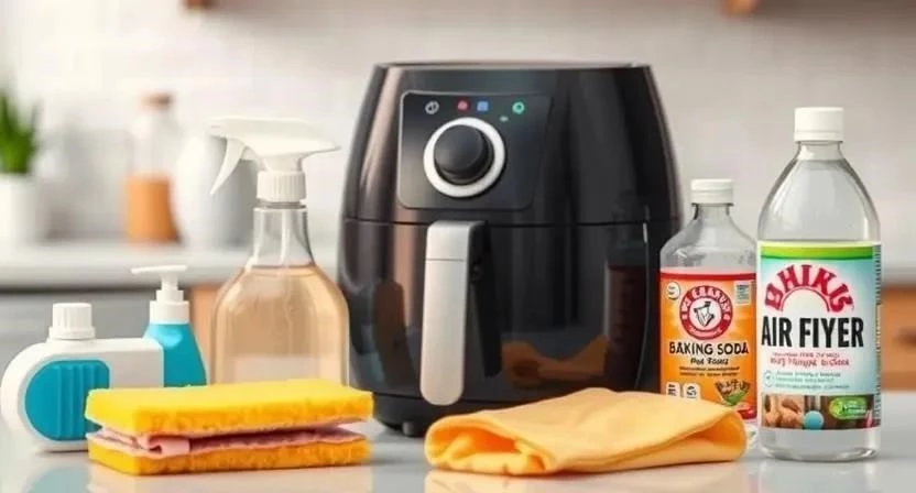 Ответ: Можно использовать специальные средства для чистки аэрогрилей, а также обычное средство для мытья посуды. Из народных средств можно использовать раствор соды или уксуса.